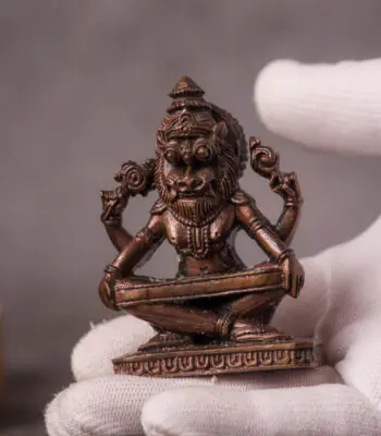 Copper Murti Yoga Nrisimhadev 2 inch, Hare Krishna, Spiritual Idol Krishna Avatara