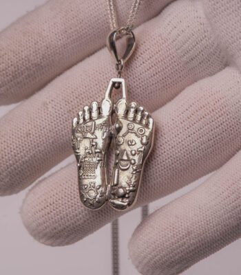 Gaura Nitai Lotus Feet Pendant Silver, Bhakti Devotional Necklace