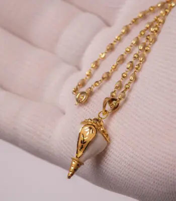 Authentic 18k Solid Gold Conch Pendant with Sacred Tulasi Kanthmala