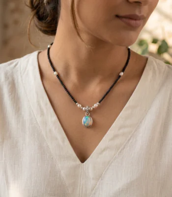 Tulasi Mala Necklace Opal Pendant Pearl Spiritual Jewelry 17 Inch Tulsi Beads