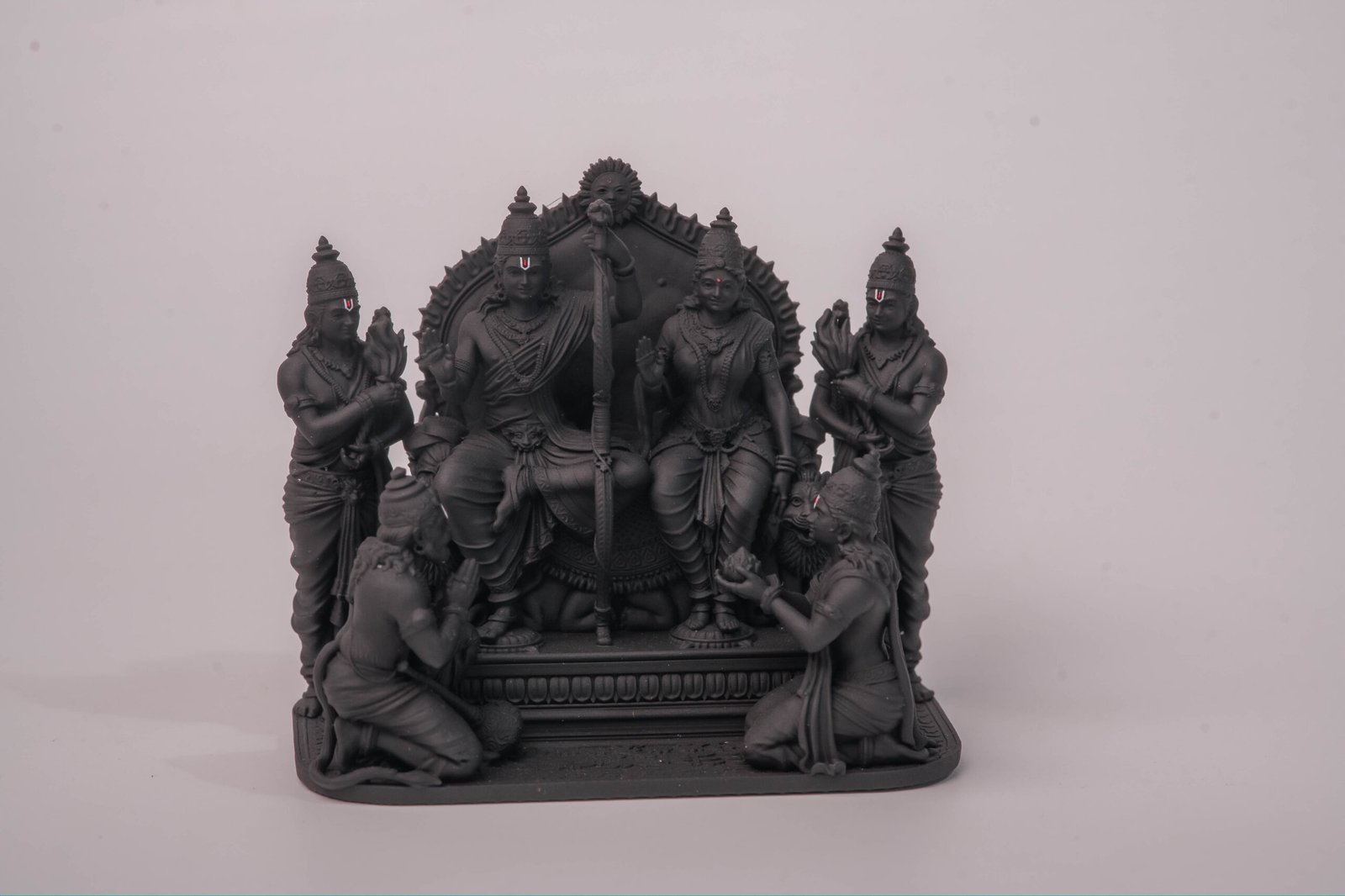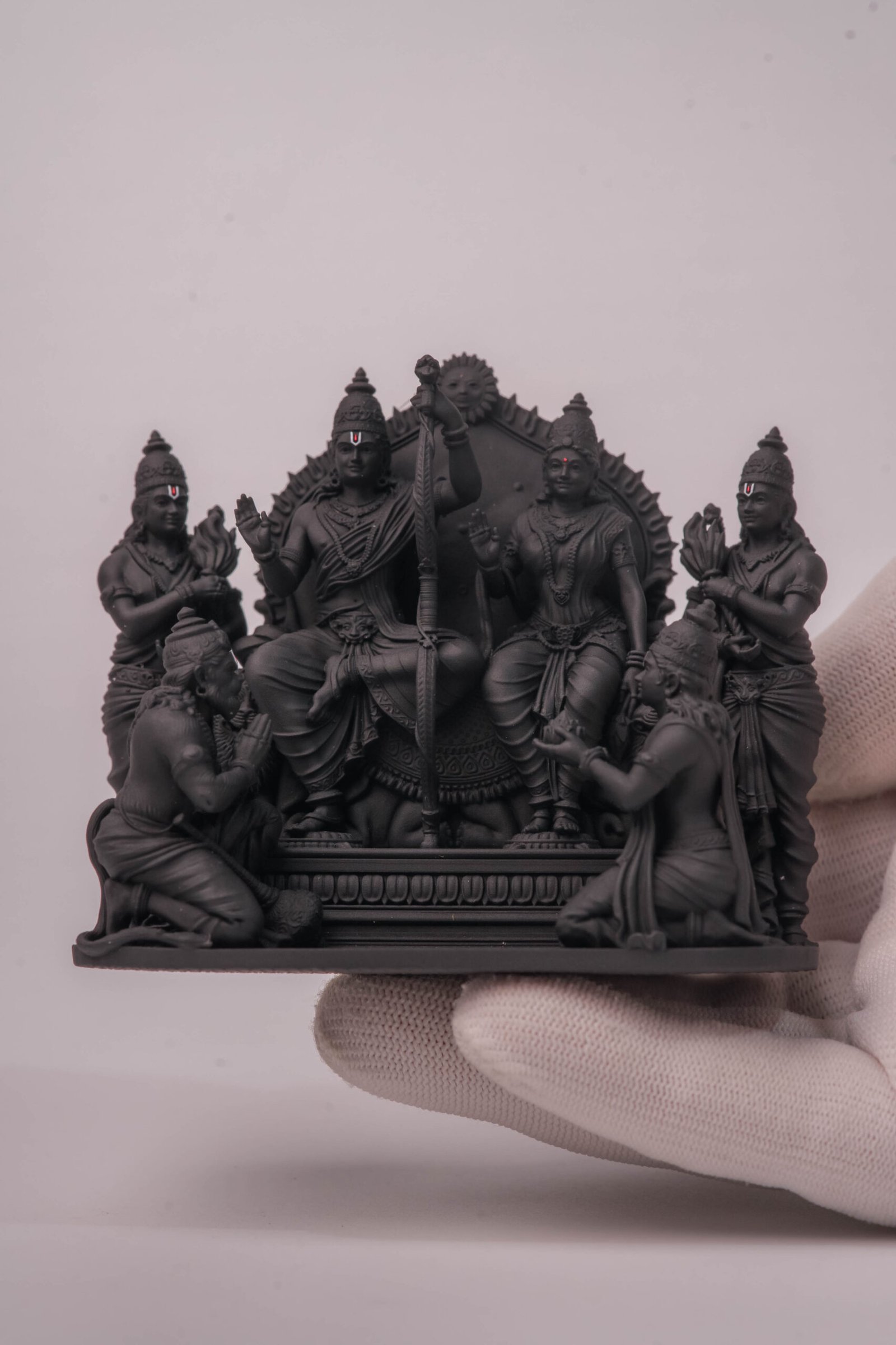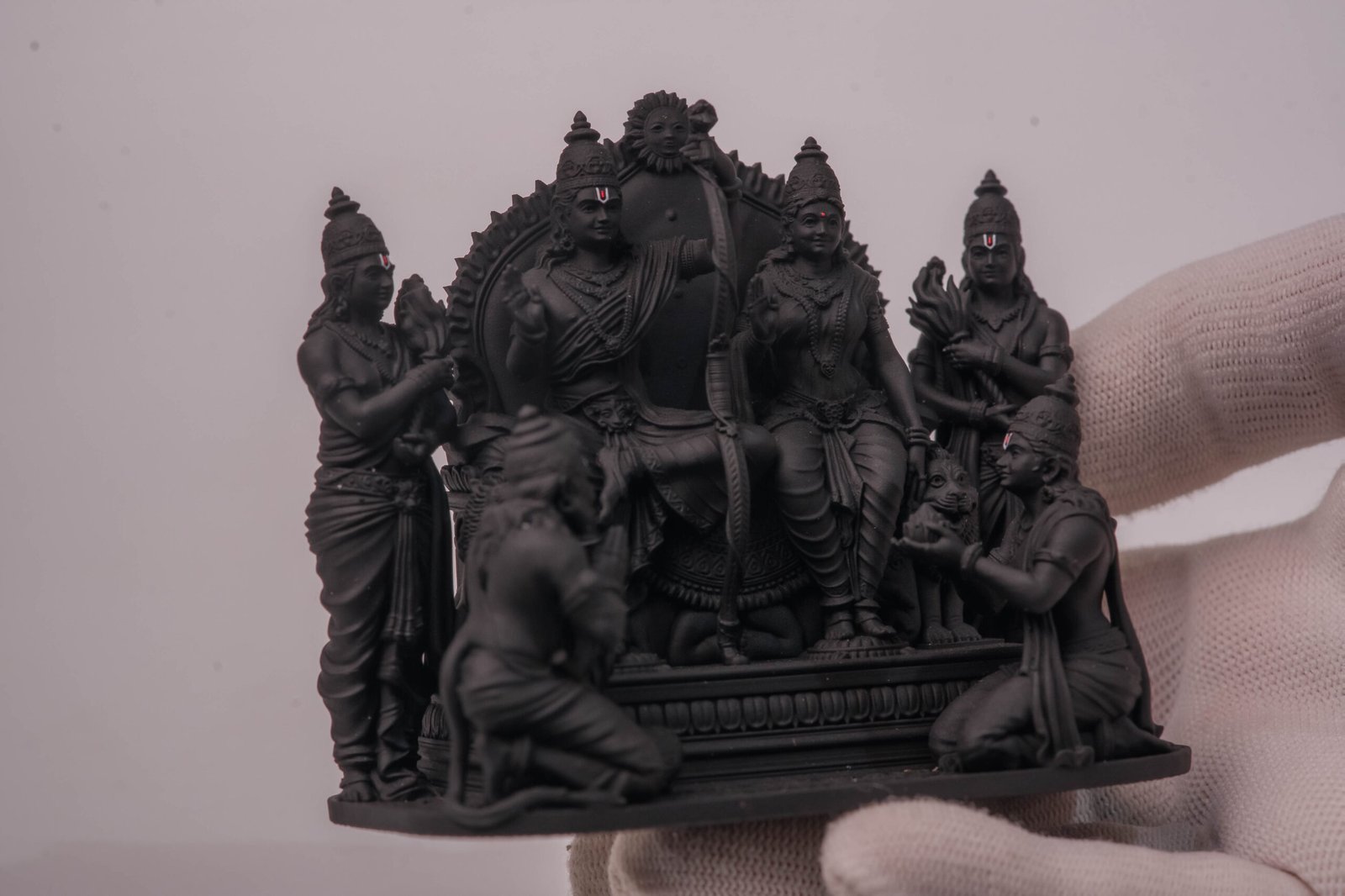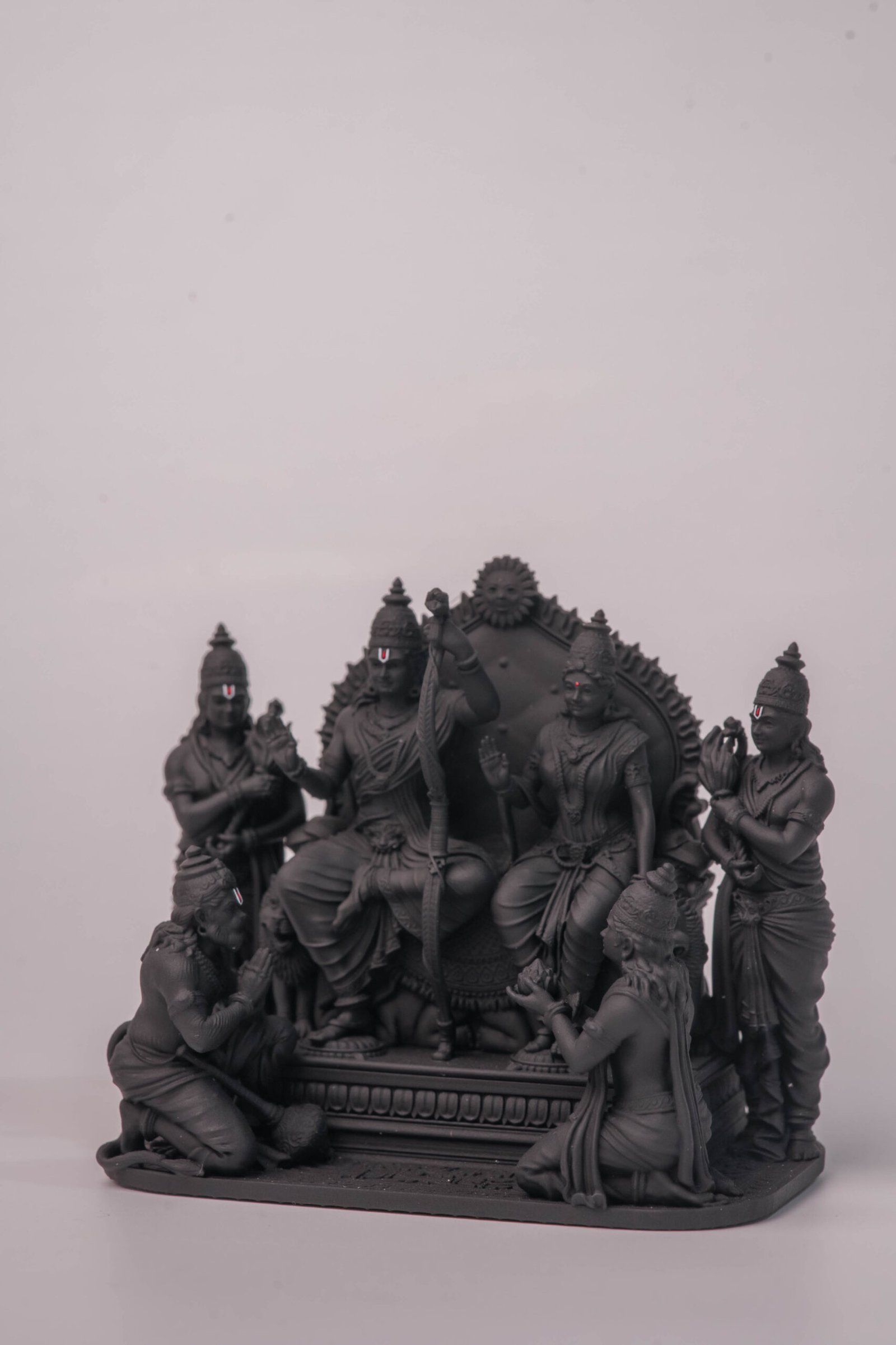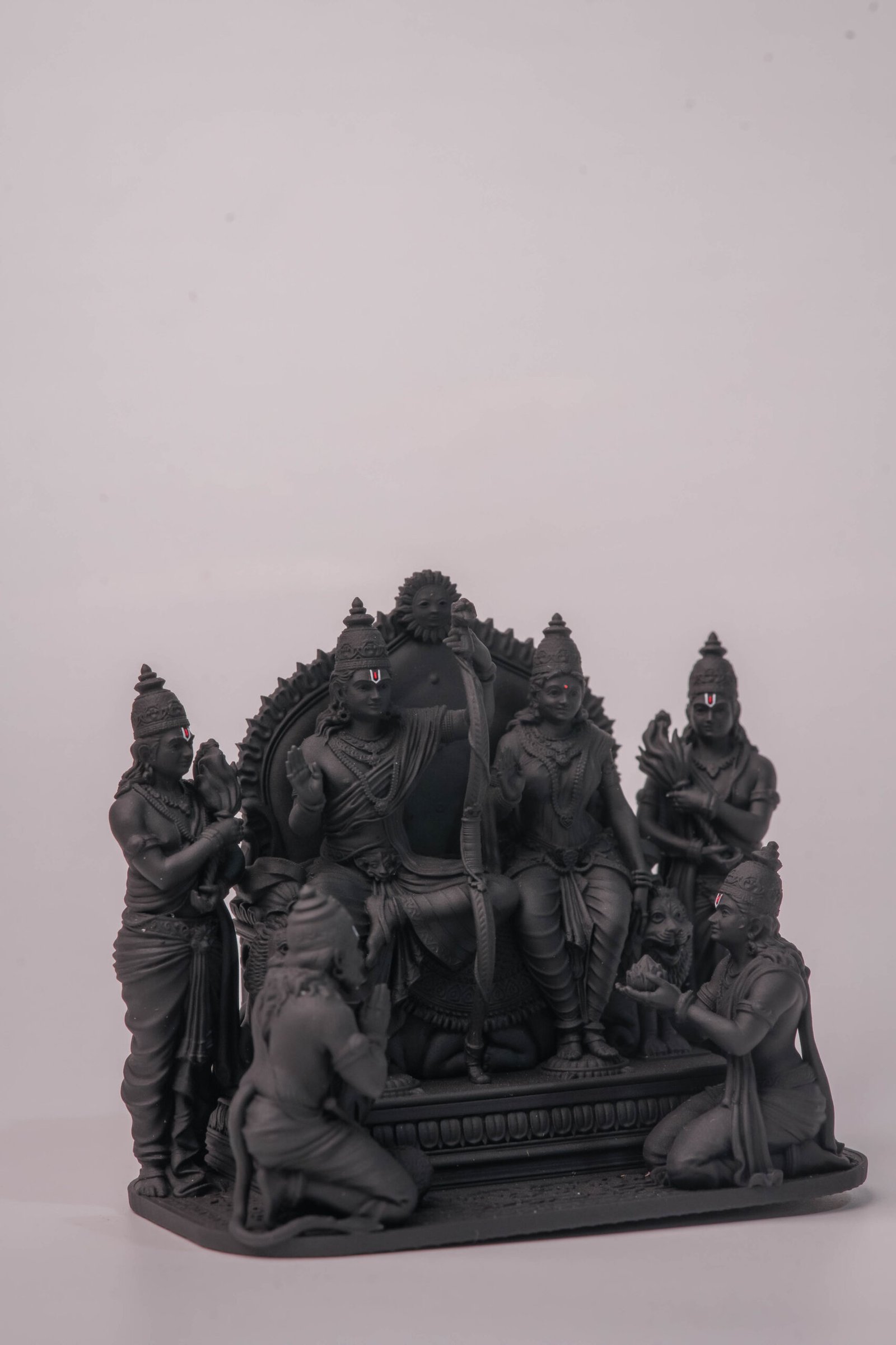 Invite divine harmony and protection into your space with this beautifully detailed Ram Darbar Murti, featuring Lord Rama, Sita, Lakshmana, and Hanuman in a powerful devotional scene.