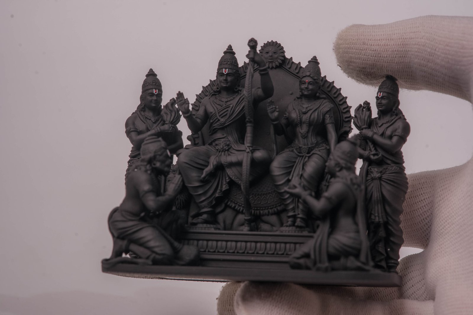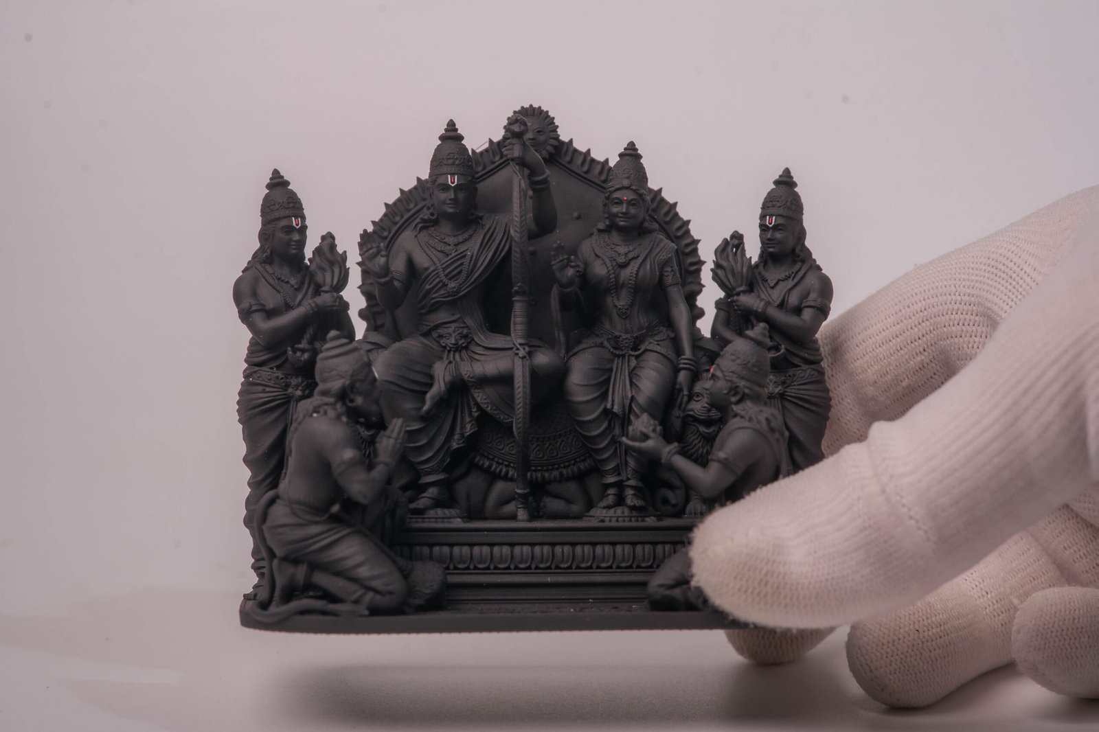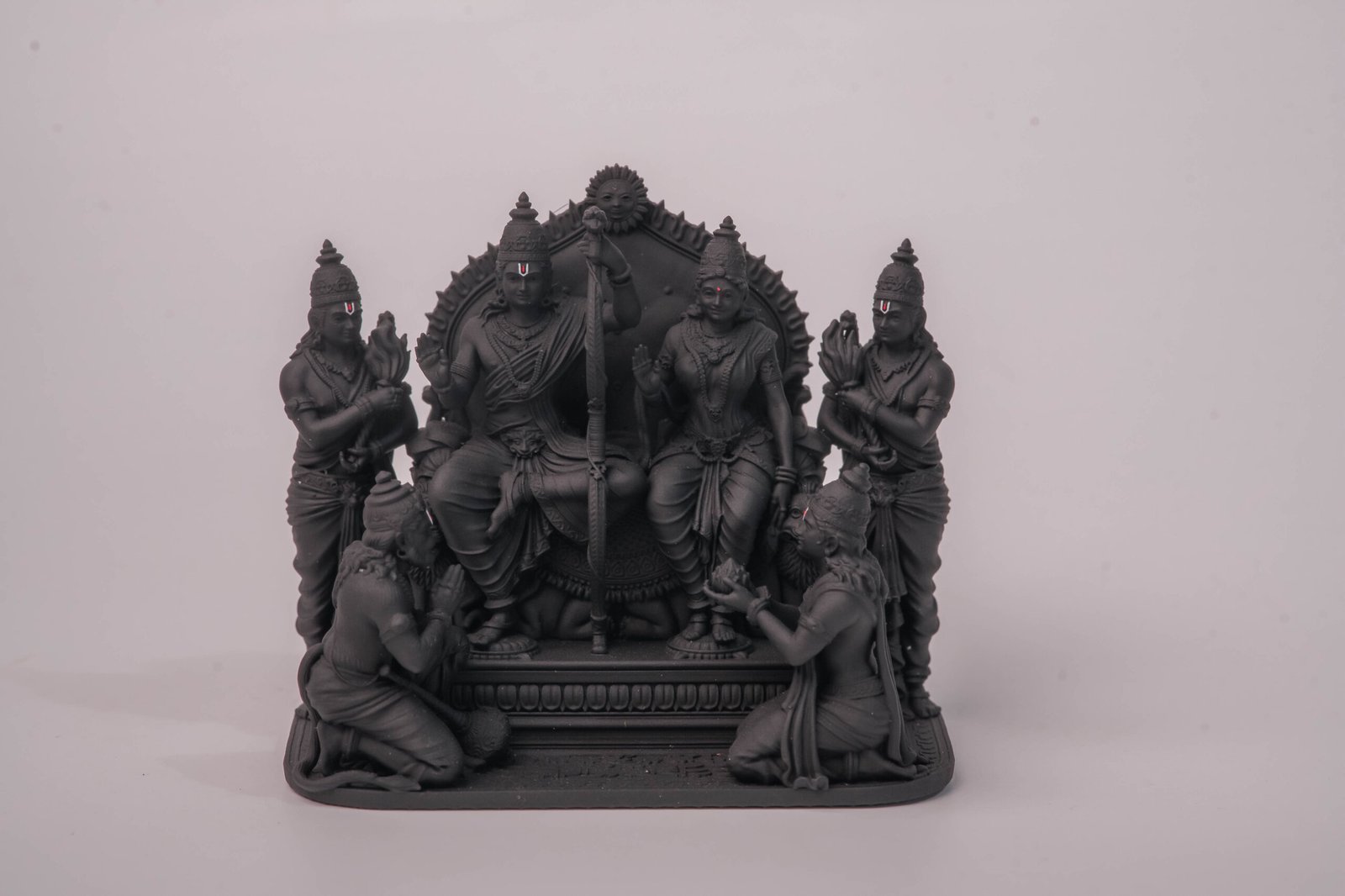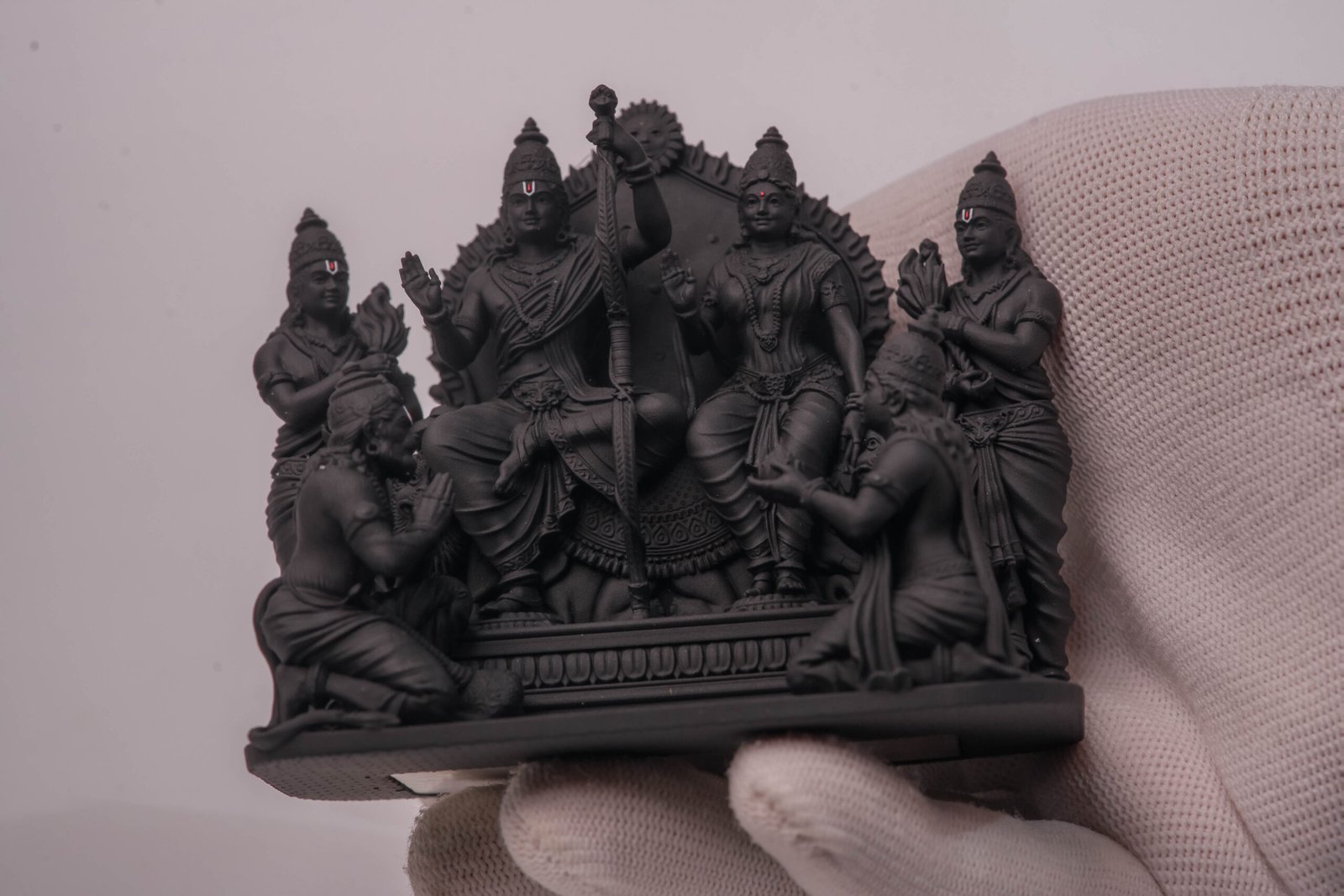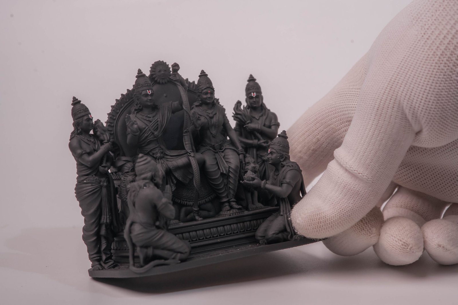 Invite divine harmony and protection into your space with this beautifully detailed Ram Darbar Murti, featuring Lord Rama, Sita, Lakshmana, and Hanuman in a powerful devotional scene.