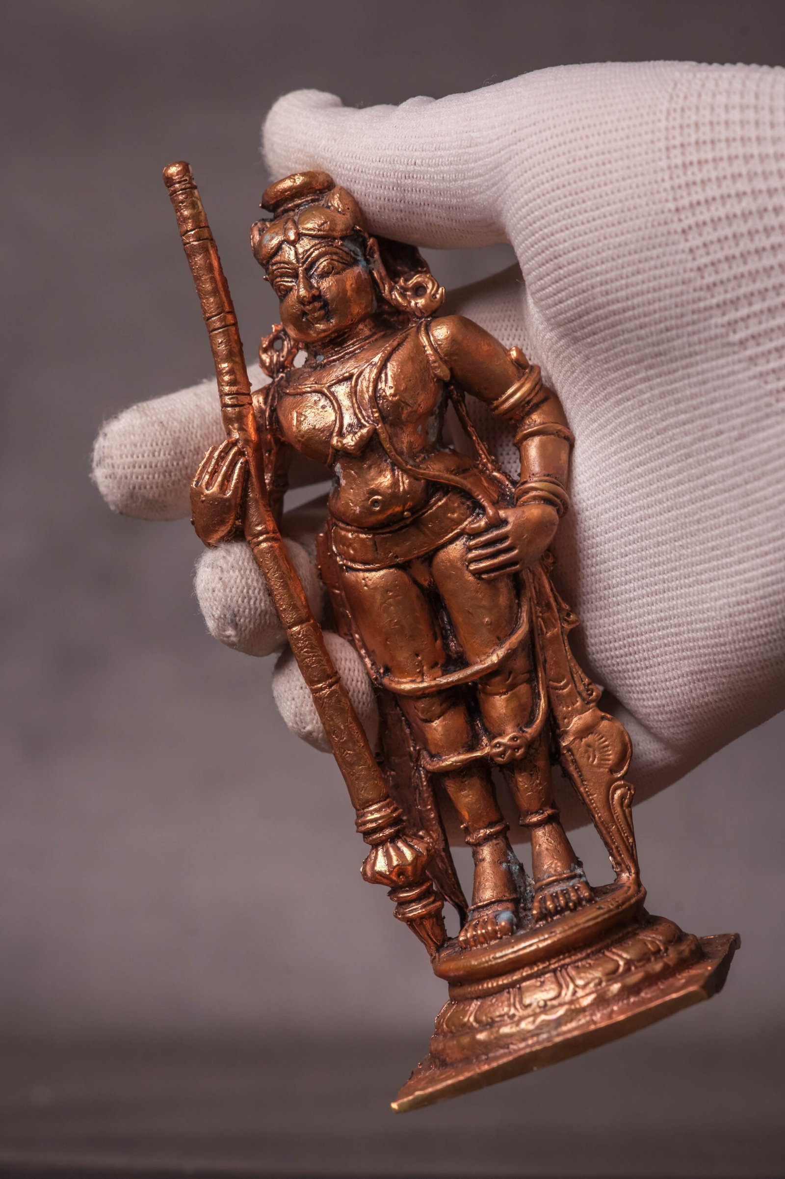 Copper Ayyappa Idol, 2 Inch, Traditional Yogic Posture Murti, Handmade India