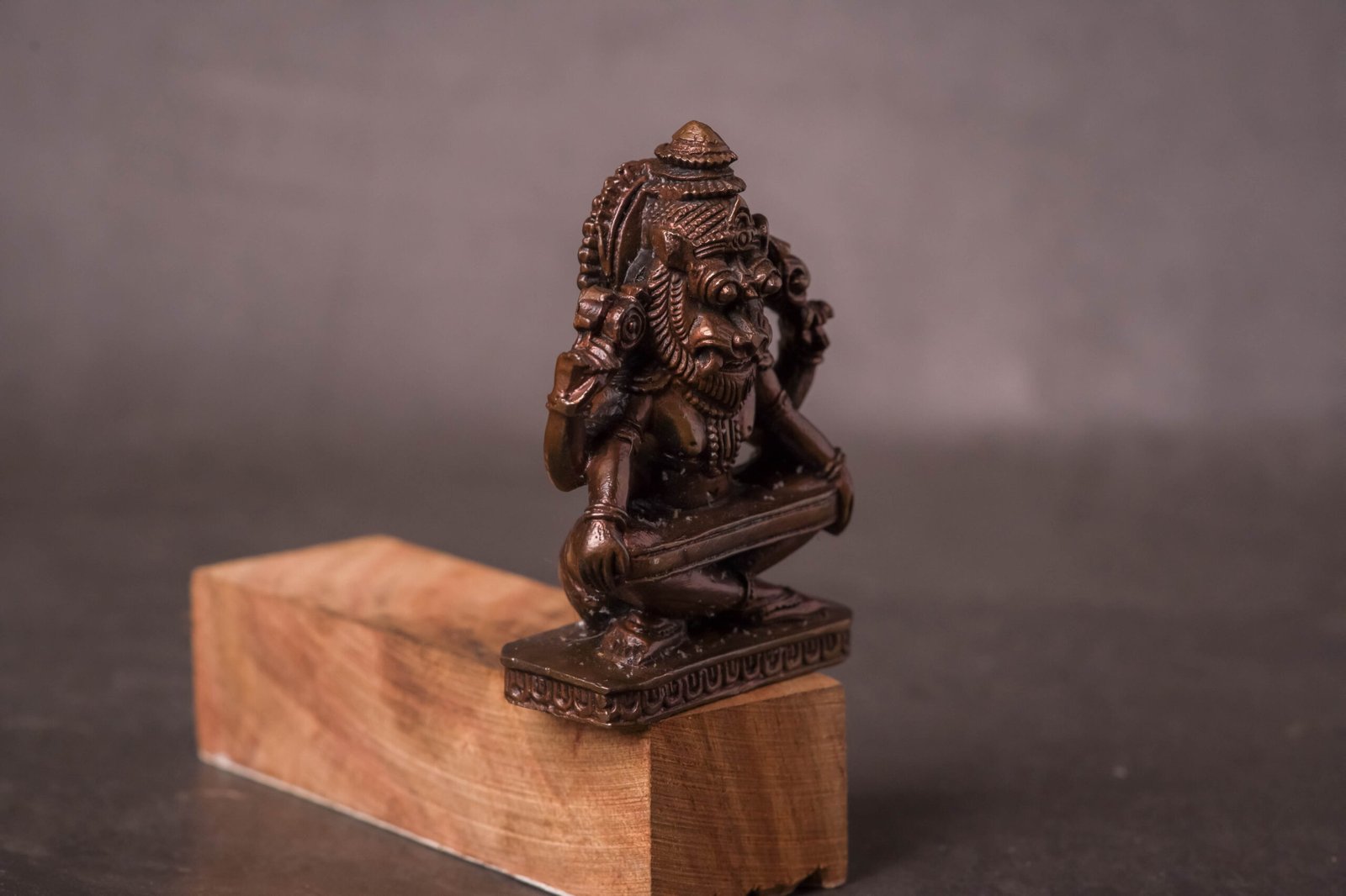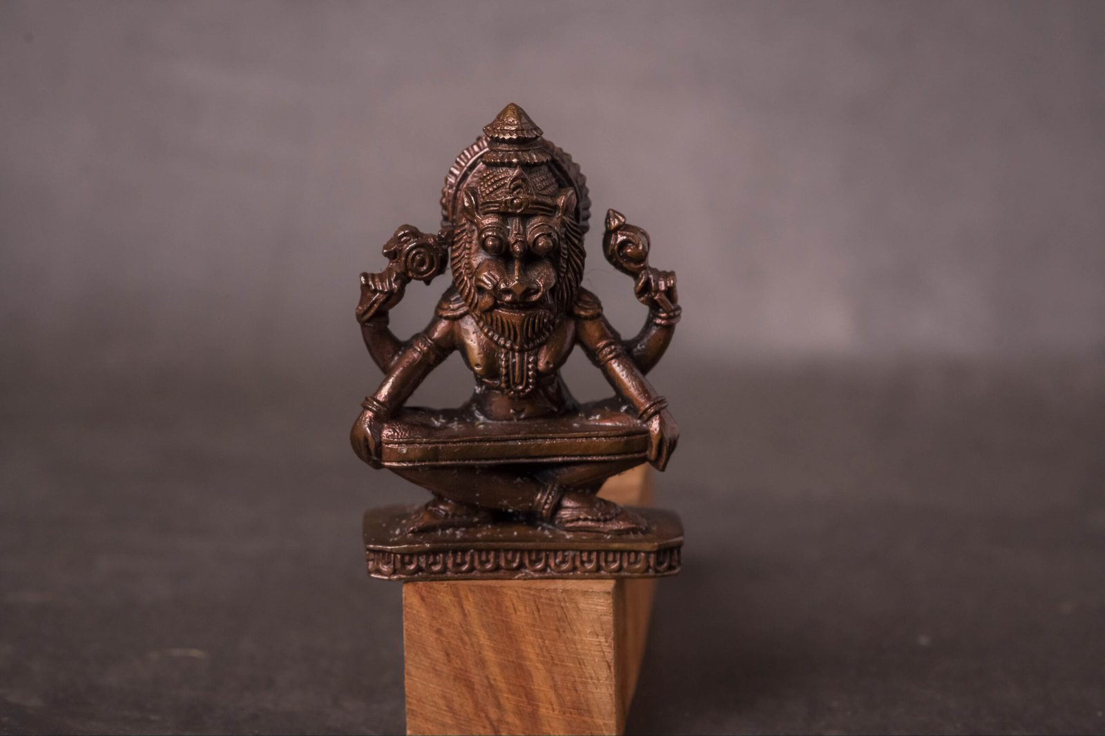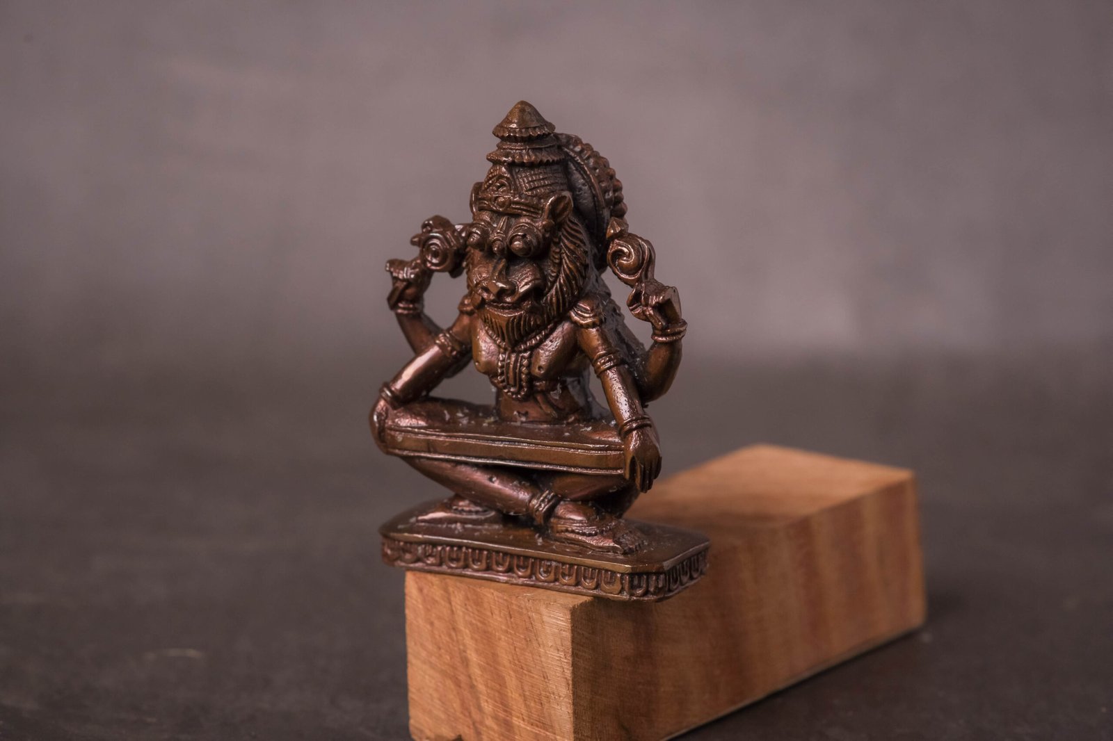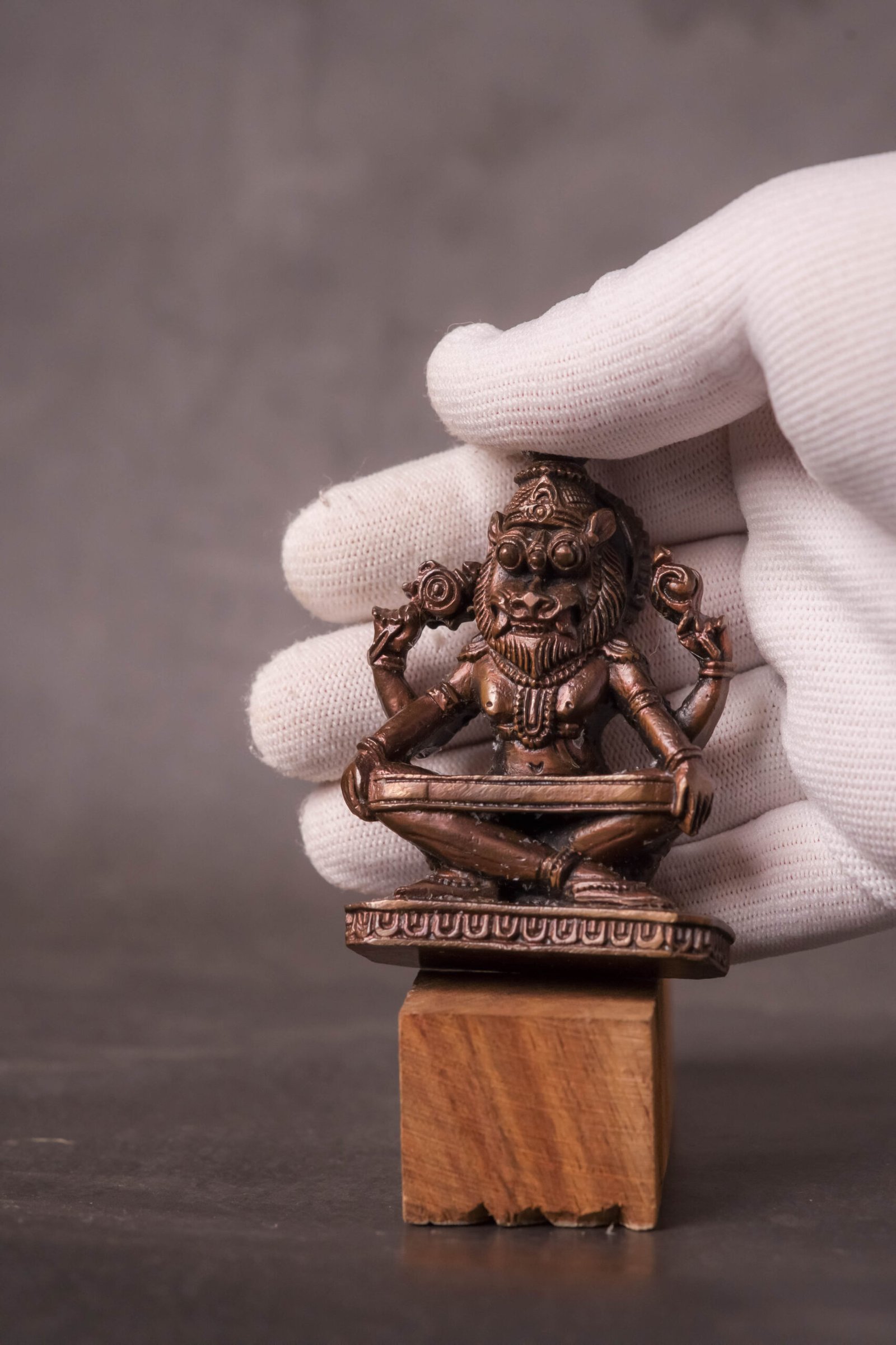 A 2.8-inch Copper Murti of Yoga Nrisimhadev is a unique and spiritually significant deity idol, perfect for a personal altar, small puja space, or as a traveling deity. This specific form of Lord Nrisimha is particularly revered for its tranquil and meditative aspect.