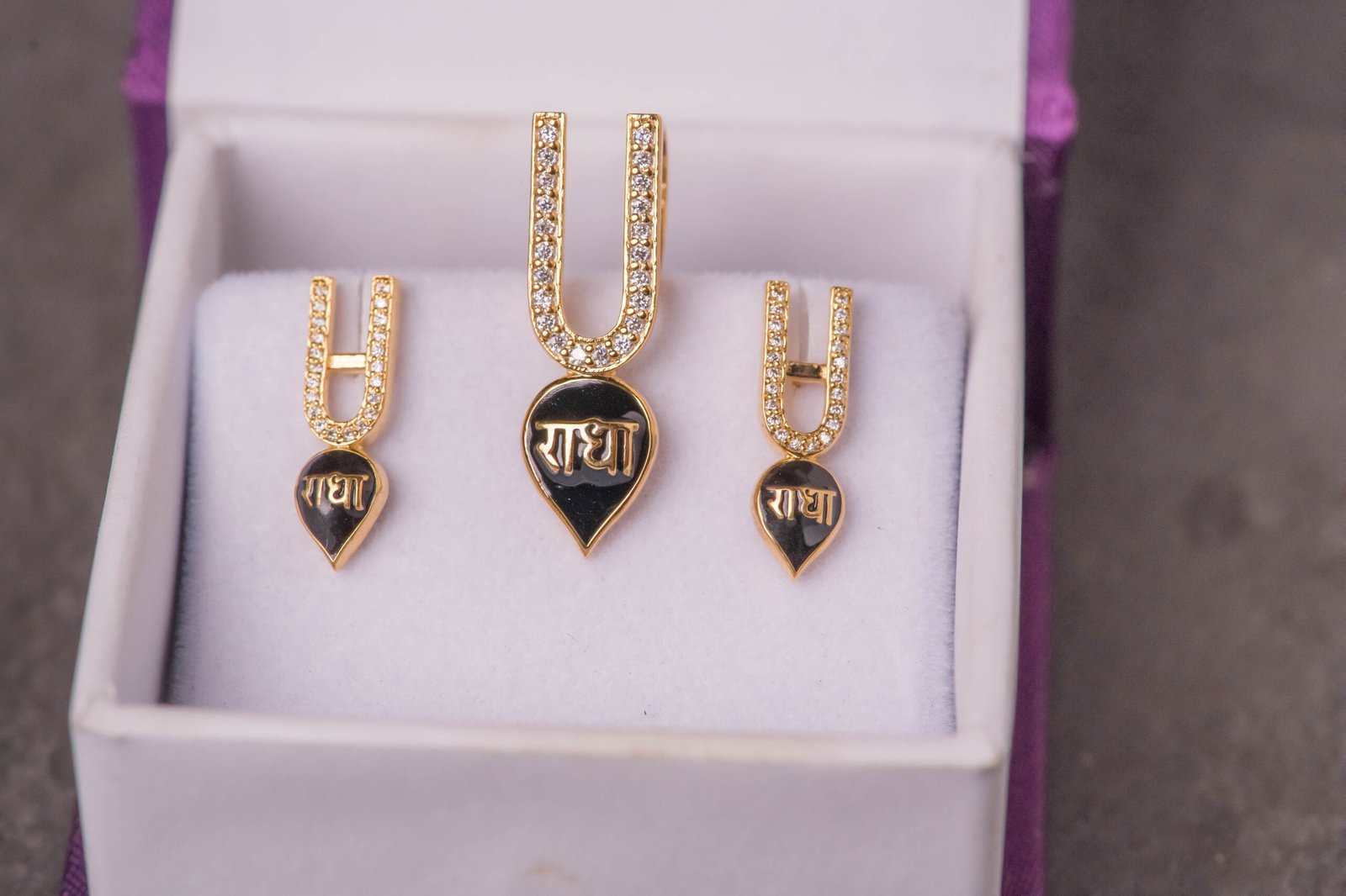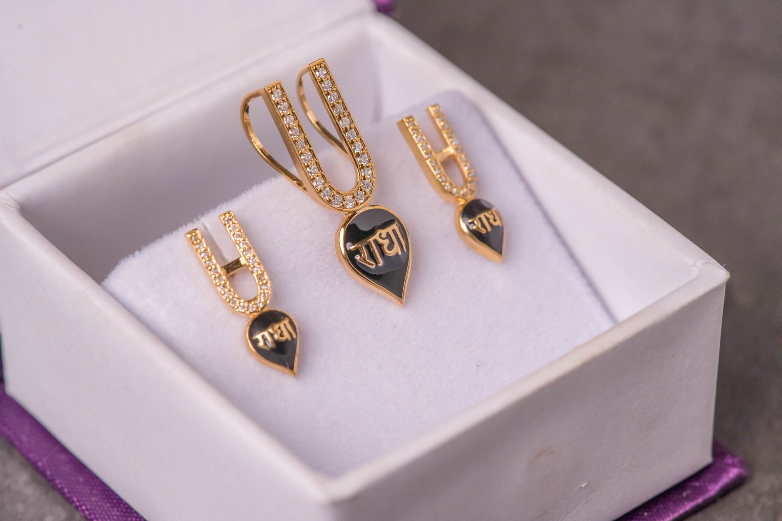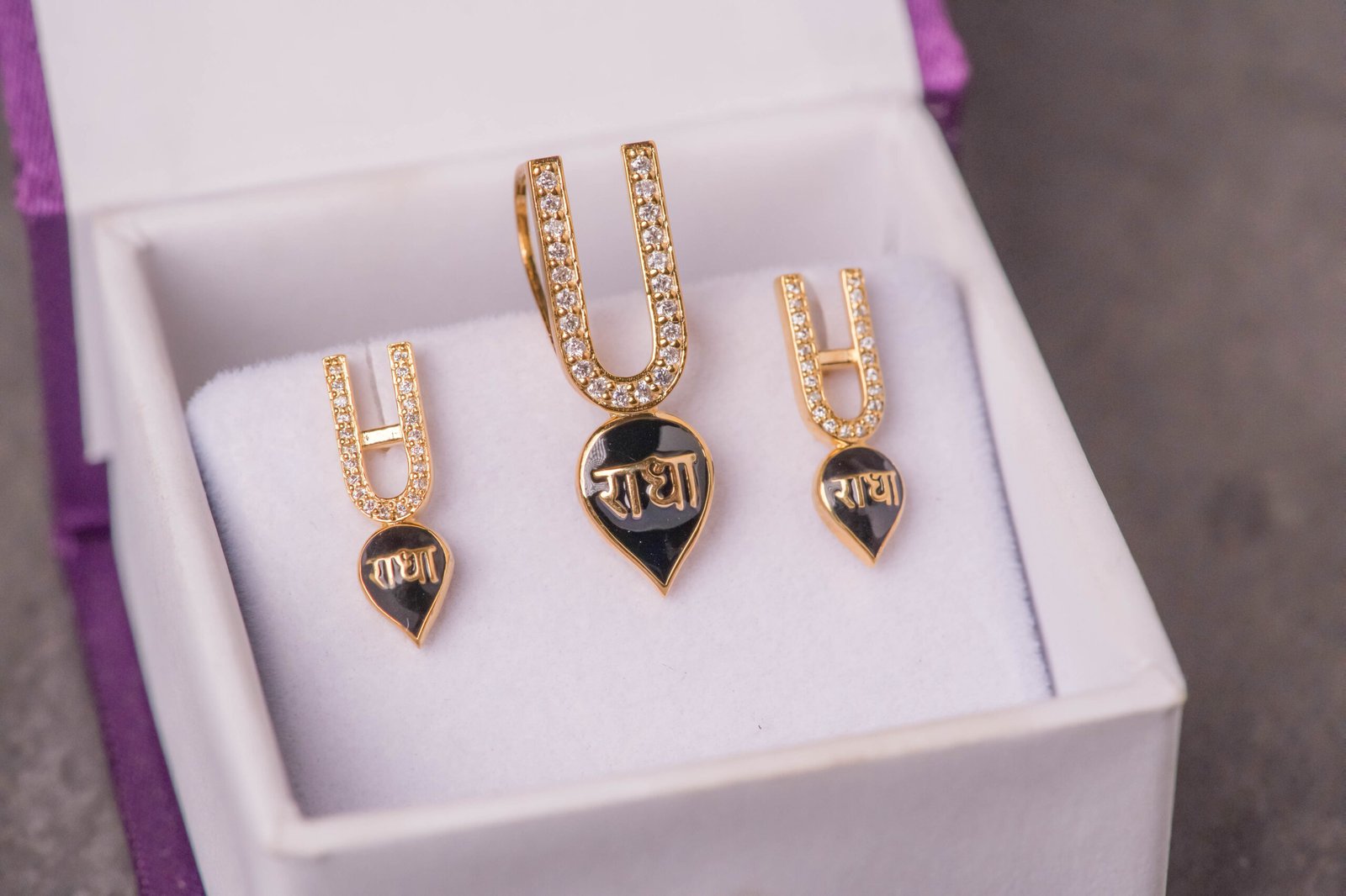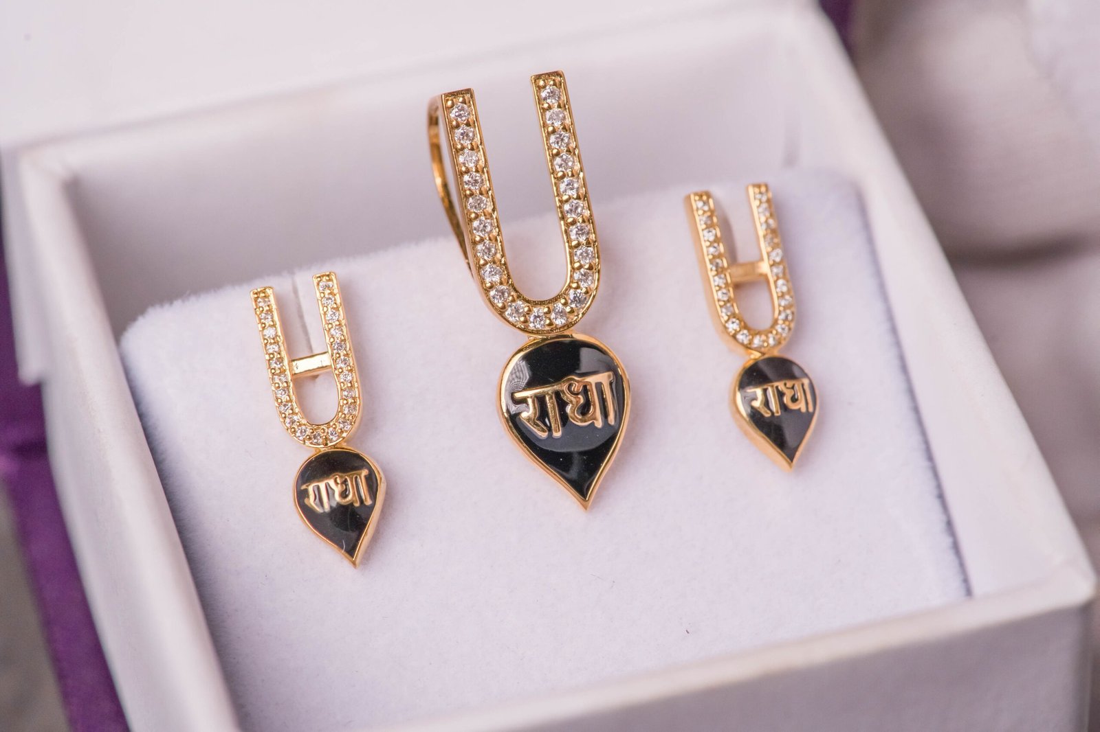 Be the first to review “Gold-Plated Sterling Silver Radhe Tilak Pendant & Earrings Set”
