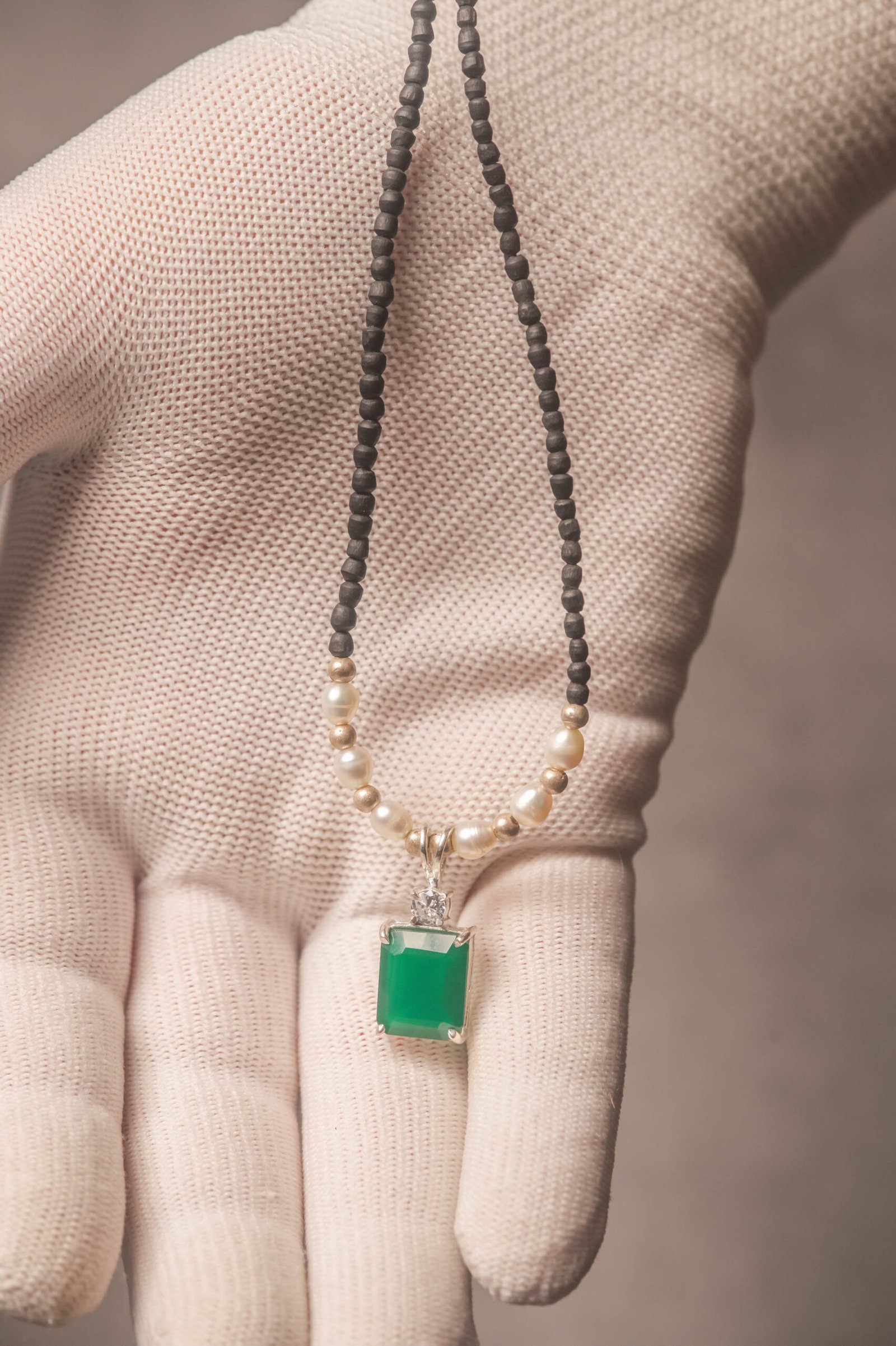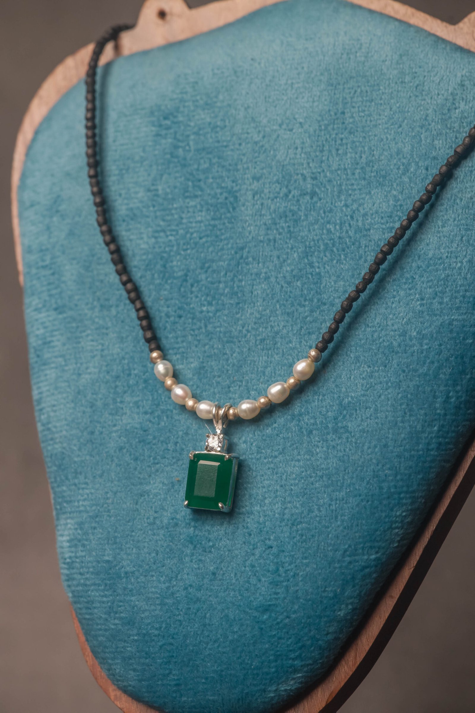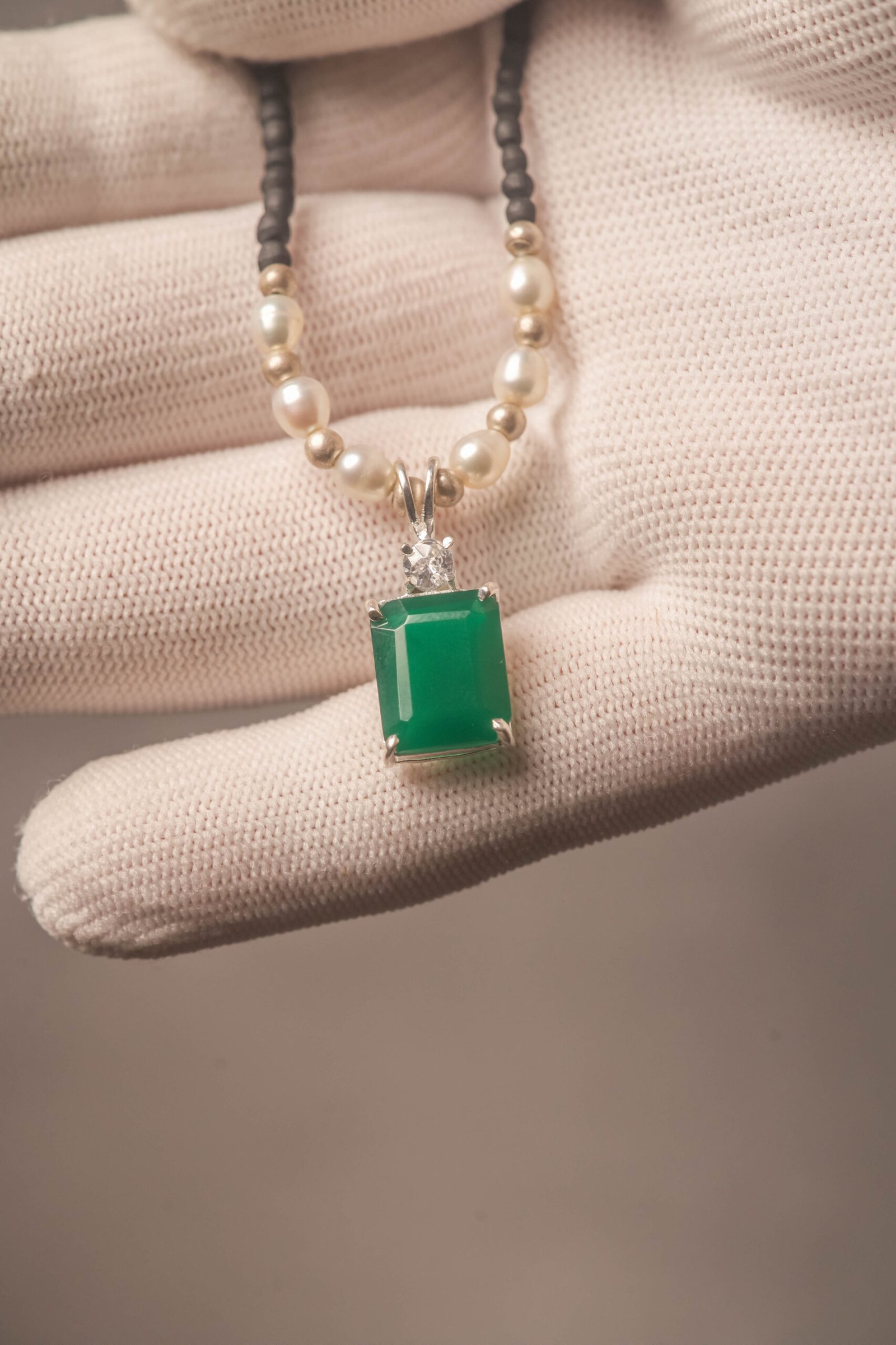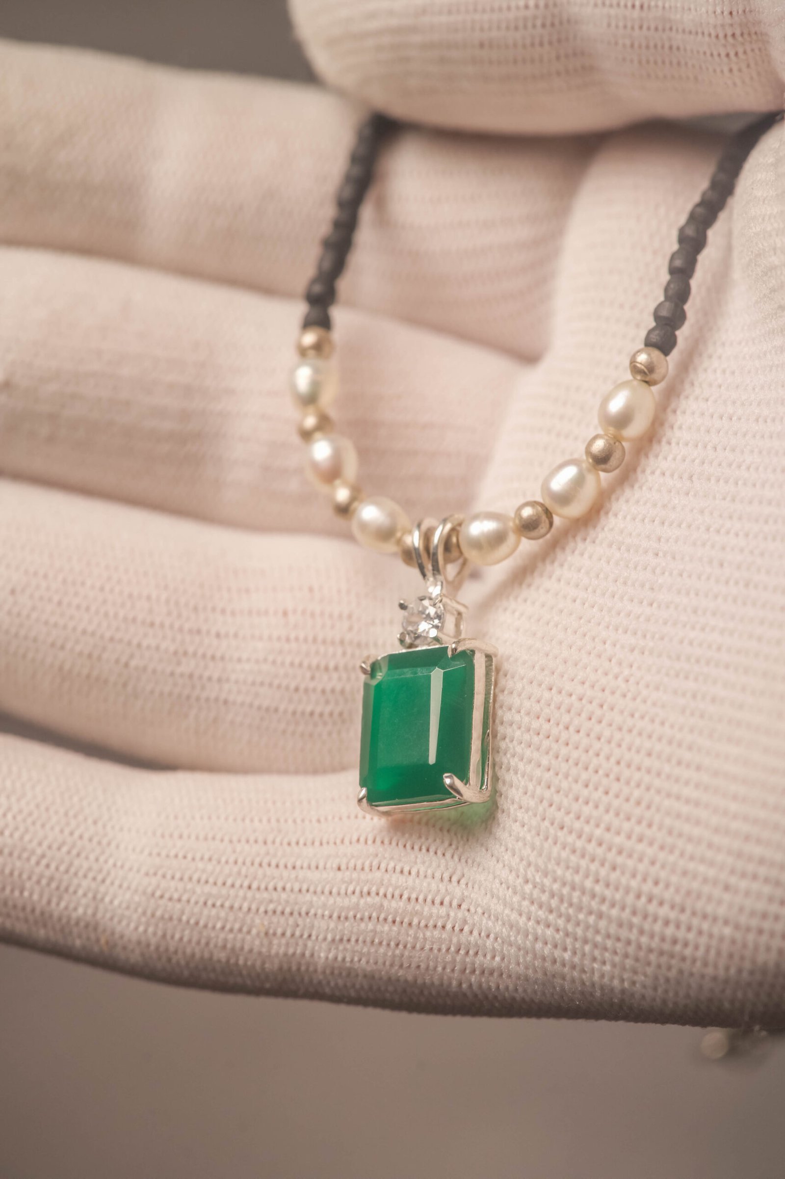 Be the first to review “Tulasi Kanthimala Necklace with Emerald Pendant, Pearl Beads, Spiritual Jewelry Gift”