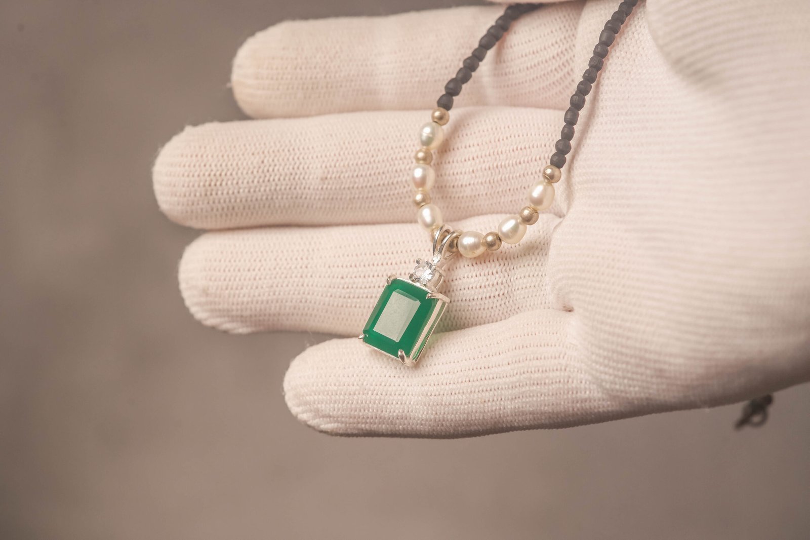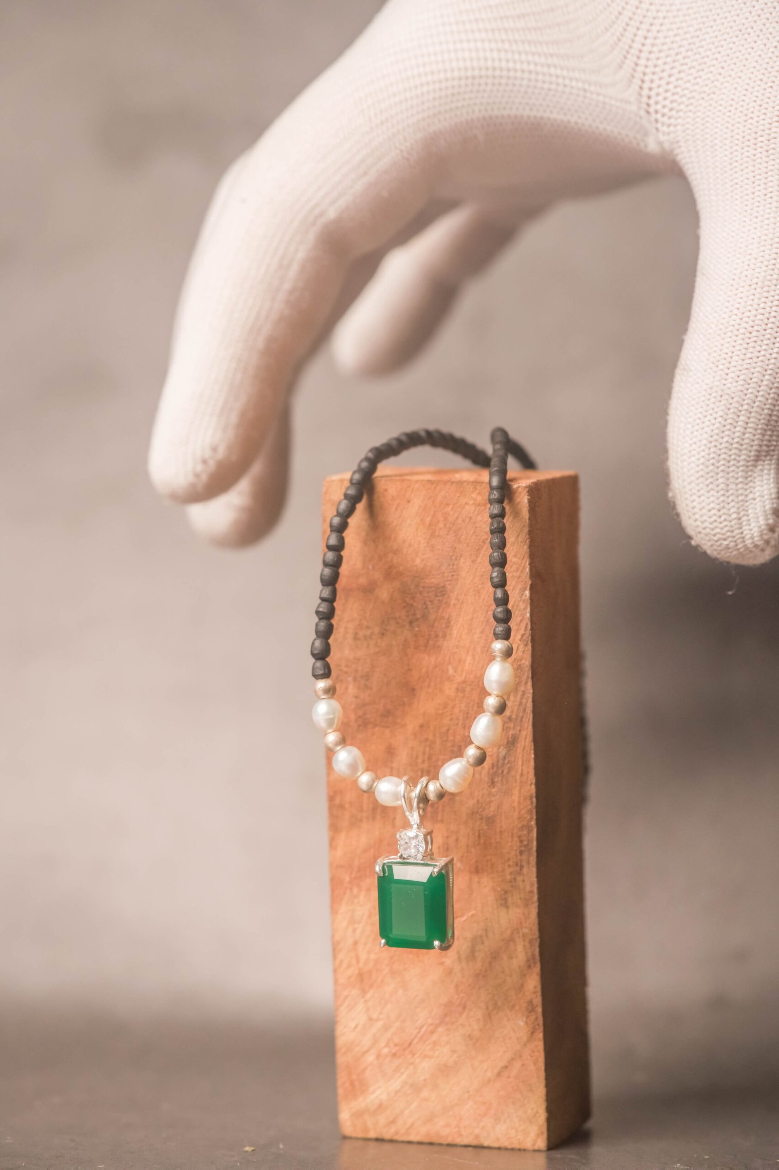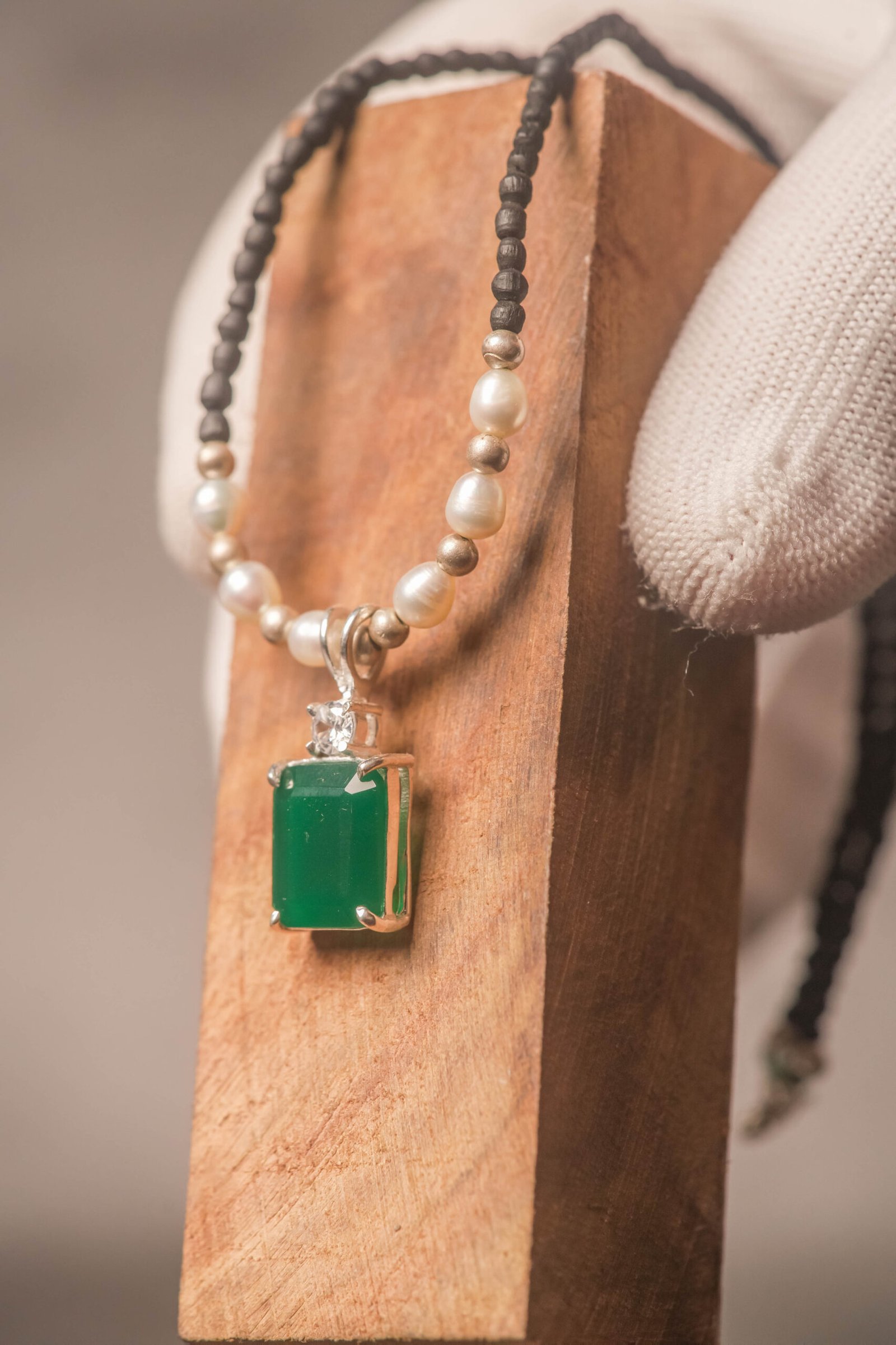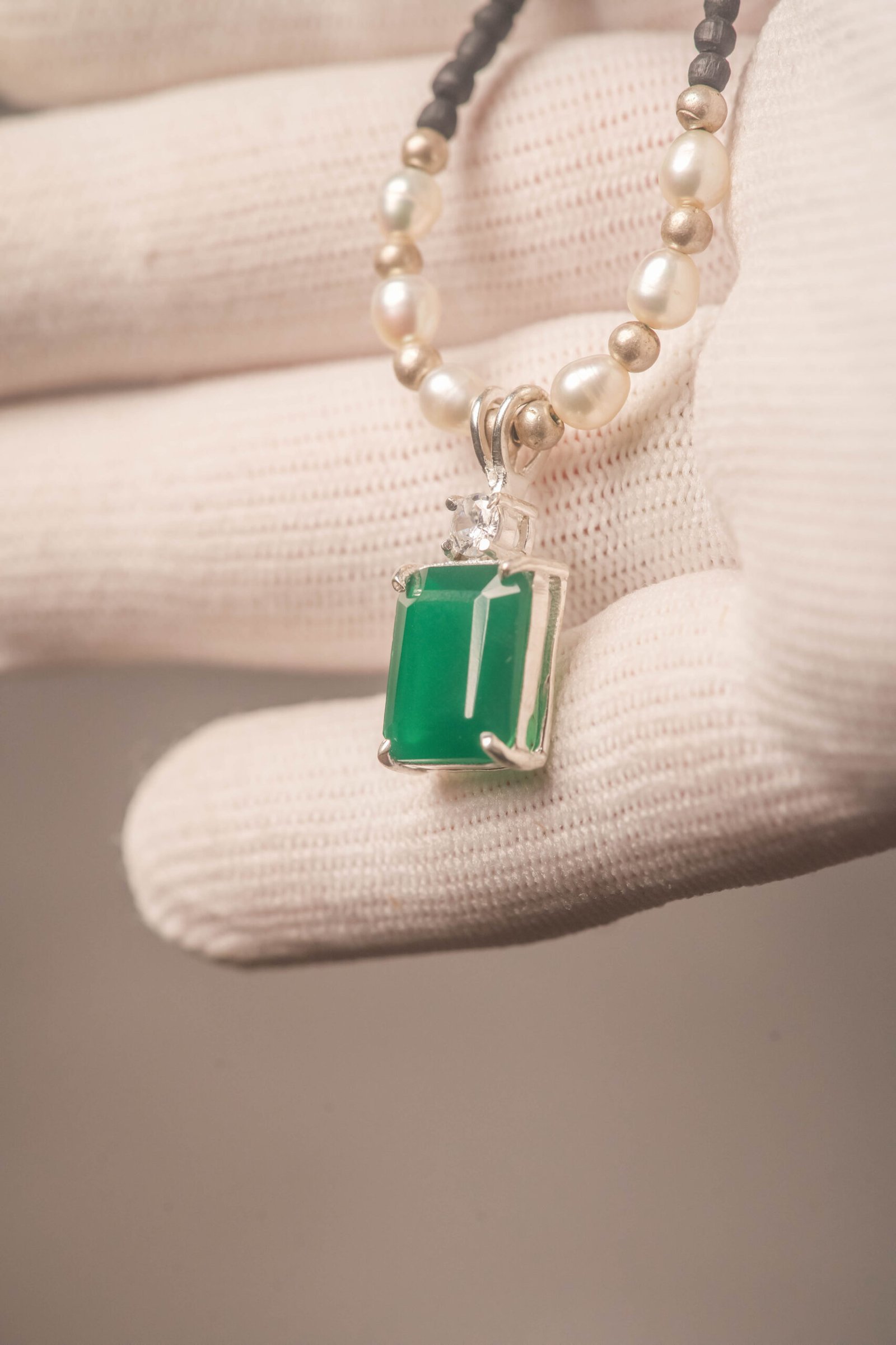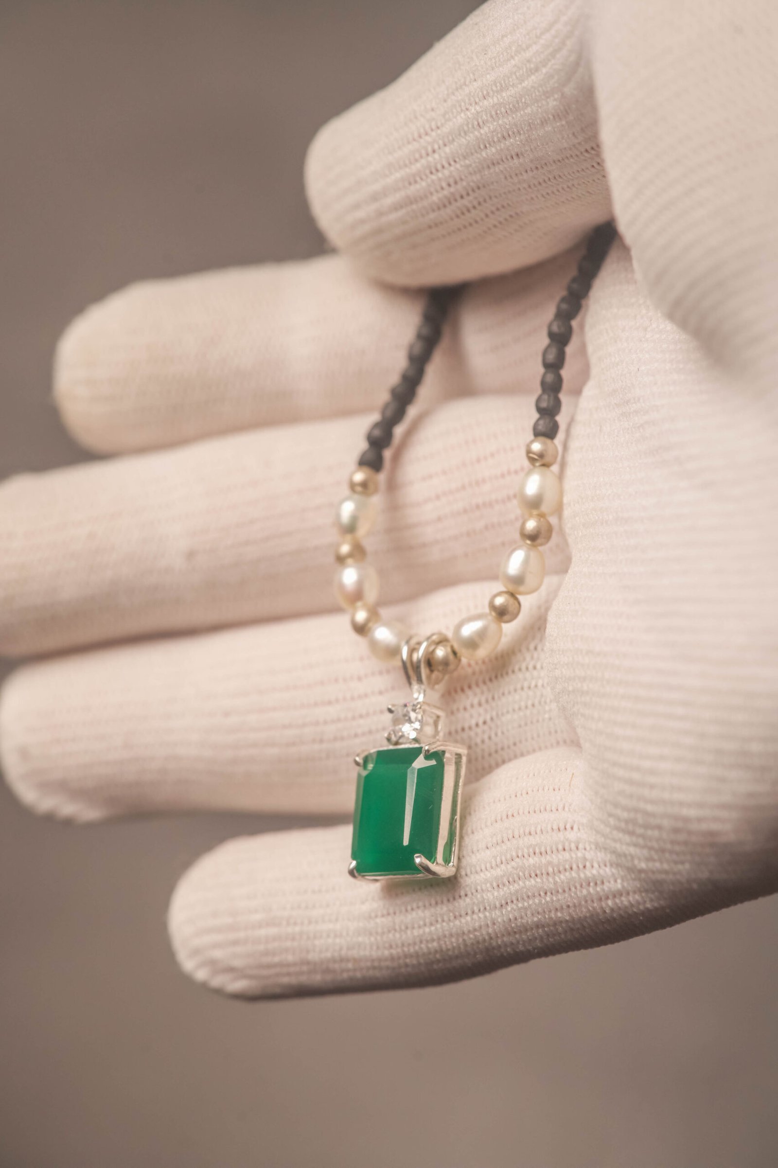 Be the first to review “Tulasi Kanthimala Necklace with Emerald Pendant, Pearl Beads, Spiritual Jewelry Gift”