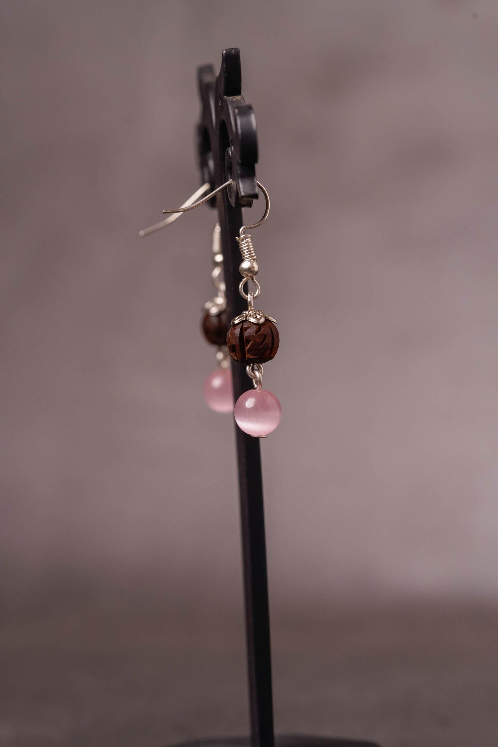 Each earring is crafted from genuine, sacred Tulasi wood (Holy Basil), revered as “Vishnu Priya” (dear to Lord Vishnu/Krishna) and an embodiment of pure devotion. Tulasi is celebrated for its profound purifying properties, cleansing the wearer’s aura, and attracting positive spiritual vibrations.